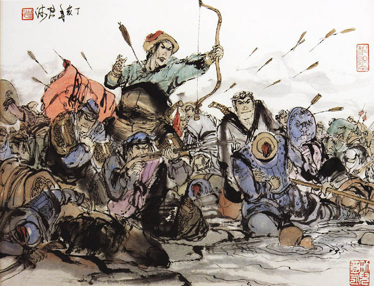 崔君沛的暴力美学 范学辉 漫天飞掠的箭矢,千百人的贴身肉搏......,这是现在那些展现冷兵器时代战争的电影大片中经常看到的镜头。它们大量借助了电脑技术。 类似这种激烈而又宏大的战争场面,在1978年就曾经出现在上海美术出版社的李自成系列连环画的《南原激战》中。如此生动的格斗场面,与之前的中国传统连环画完全不同,在中国连环画艺术史上没有先例。绘制这些精彩画面的人,就是当年二十八岁的崔君沛(1950年-2008年)。附图为达芬奇《安吉里之战》(鲁本斯临摹)和《南原激战》《强渡汉水》画面的对比 。